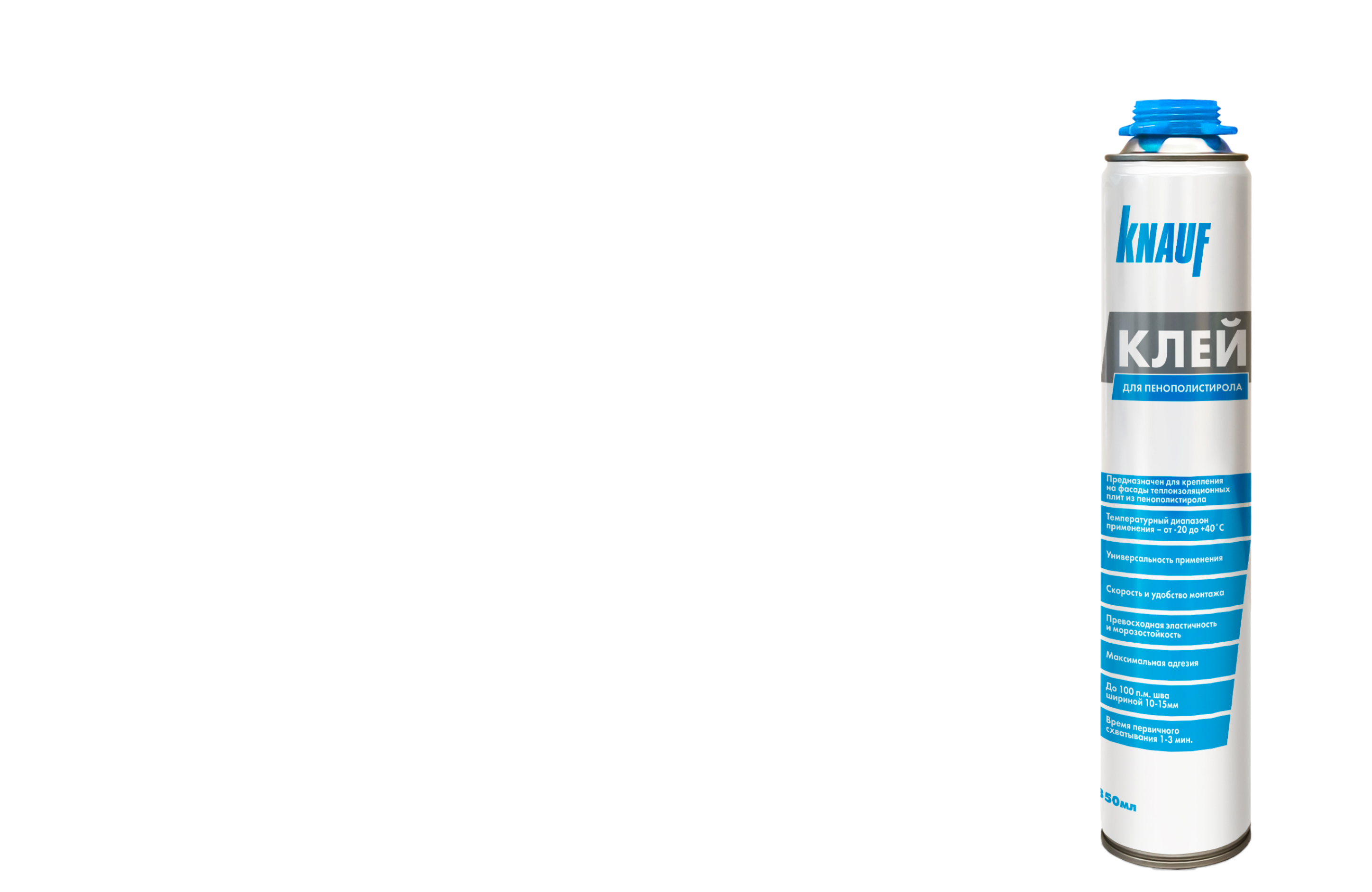 КНАУФ-Клей для пенополистирола в аэрозольной упаковке – это однокомпонентное полиуретановое решение для быстрого, прочного и долговечного крепления теплоизоляционных плит и других строительных элементов для всесезонных работ внутри и снаружи здания. Предназначен для крепления плит из ППС и других вспененных материалов, для герметизации кровель и иных конструкций, а также для монтажа декоративных элементов.