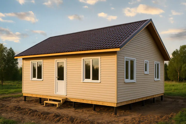 Если строить дачный дом из СИП-панелей своими руками, расходы на небольшой одноэтажный дом площадью 40–60 м² составят примерно 450 000–800 000 рублей. В эту сумму входит домокомплект, крепеж, фундамент на сваях и базовая отделка. При частичном привлечении мастеров (фасад, кровля, электрика) бюджет может вырасти до 1–1,2 млн рублей, что все равно дешевле готового варианта «под ключ» на 30–40 %.